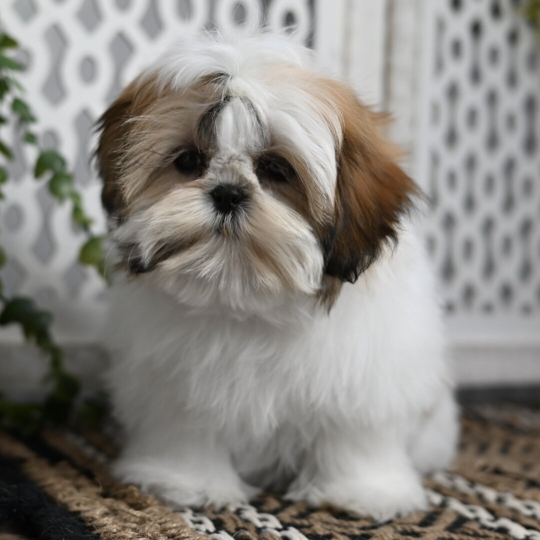 Shih Tzu Maltese Mix For Sale. I’m Layla! I’m an 18-week-old female Shih Tzu with a beautiful red & white coat, born on November 5. I am ready now to plan my trip to my forever family. Once I reach my adult size, I’m expected to weigh between 8–12 lbs. I’m APRI registered. I will love you just as much as I love chasing my tail.
